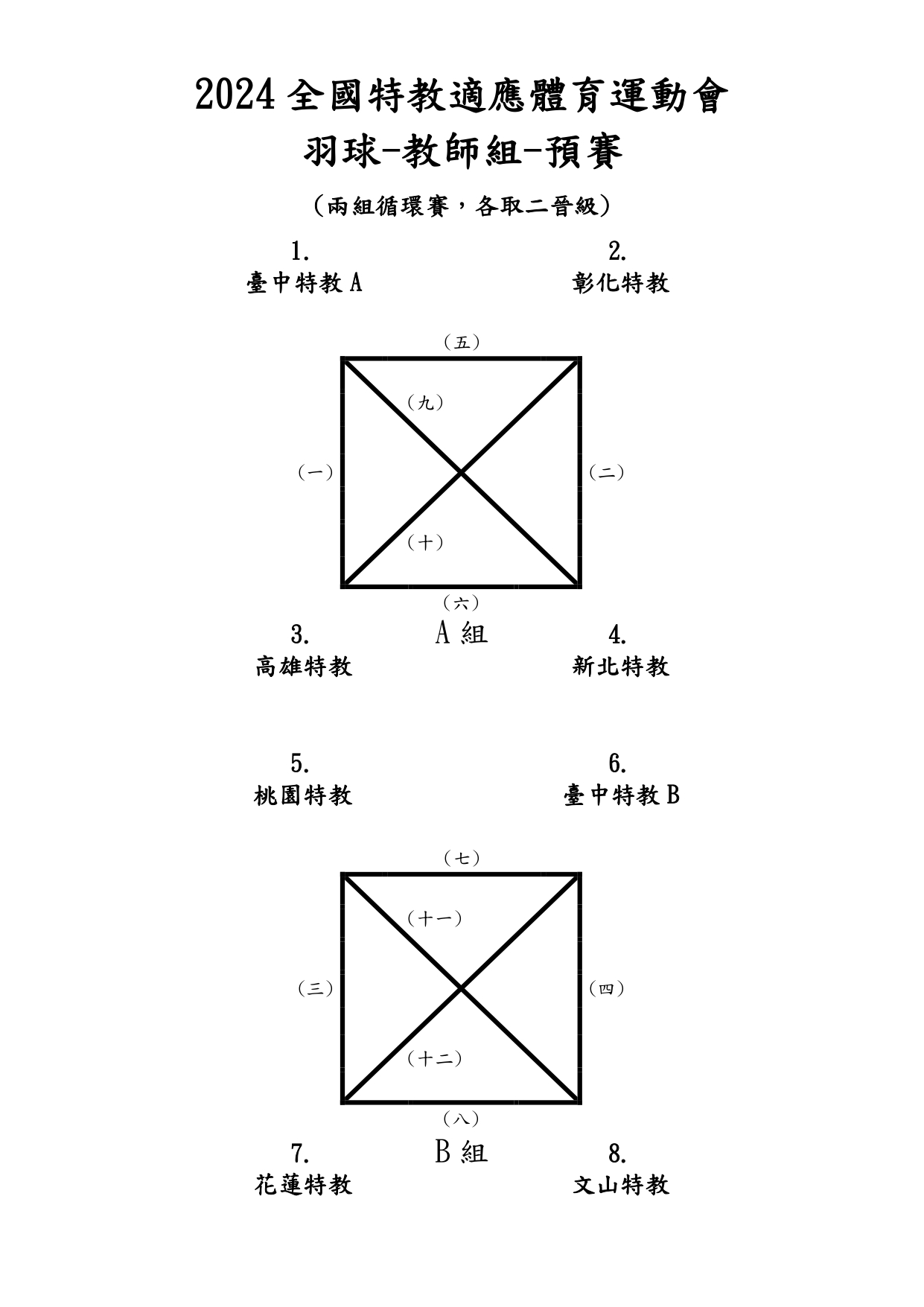 2024全國特教適應體育運動會羽球競賽表-教職員組